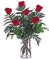 One half-dozen of our finest Red Roses, surrounded by baby's breath and fresh greens...