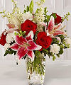 Present this classic and lustrous bouquet to the love of your life and celebrate your anniversary in style! Sweet-fragranced Stargazer lilies and classic red roses are interwoven with pure white bloss... ...