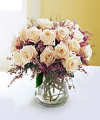 The beauty of these 18 roses is accentuated by soft pink waxflower... ...